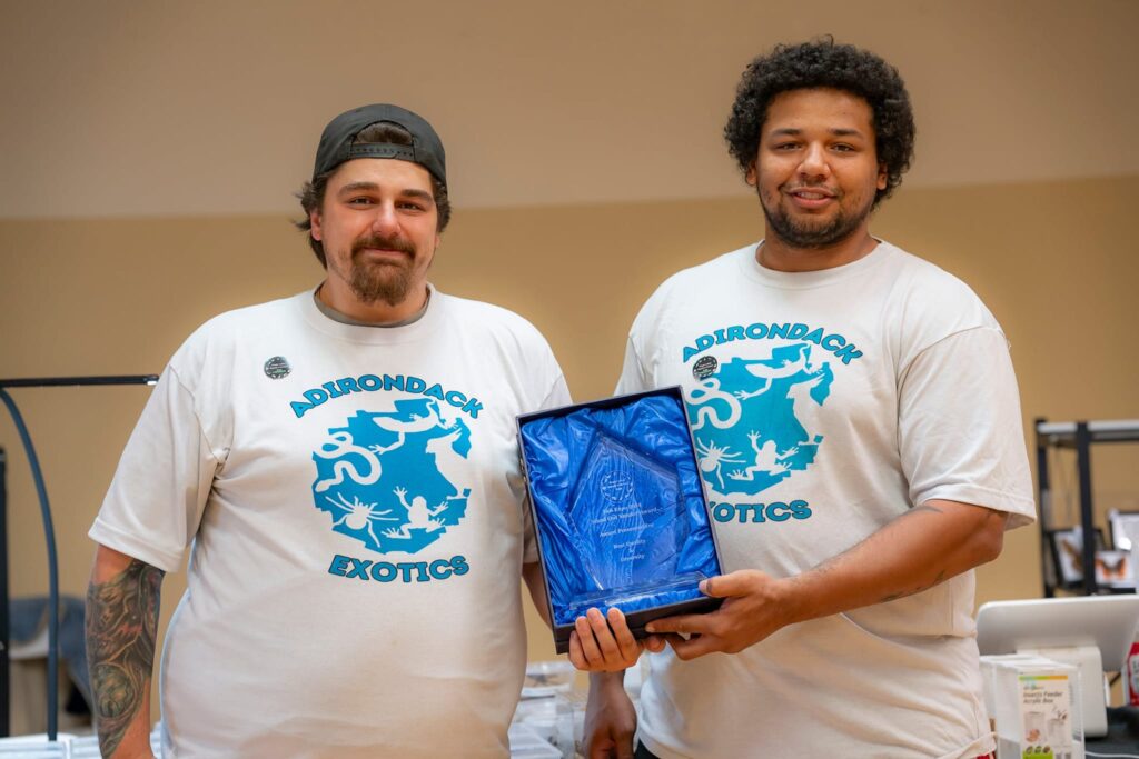 Meet Jordan on the left and Darrin on the right, the proud owners Adirondack Exotics! Pictured in front of our first store. With a combined 20 years of experience in the hobby, they are dedicated to providing you with the best information and quality animals possible. Their commitment to excellence ensures that you receive top-notch service and expertise every time you visit!